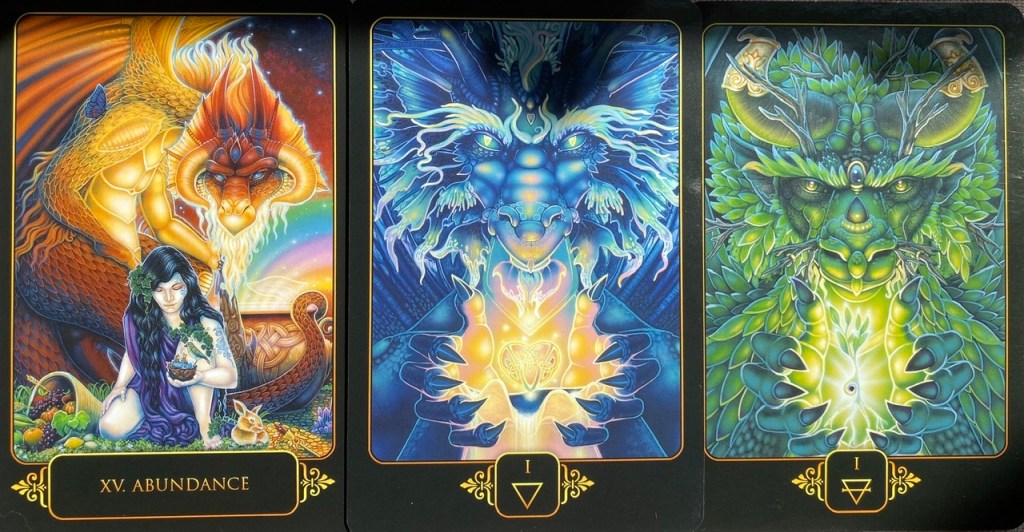 The images are Dreams of Gaia tarot by Ravynne Phelan, Blue Angel