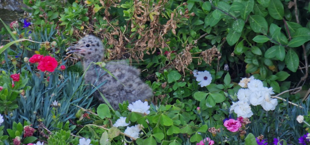 Some towns in Cornwall perfect breeding ground for Seagulls, houses that have flat roof tops, perfect for baby seagulls. It’s baby time now, you can see one in a photo above.