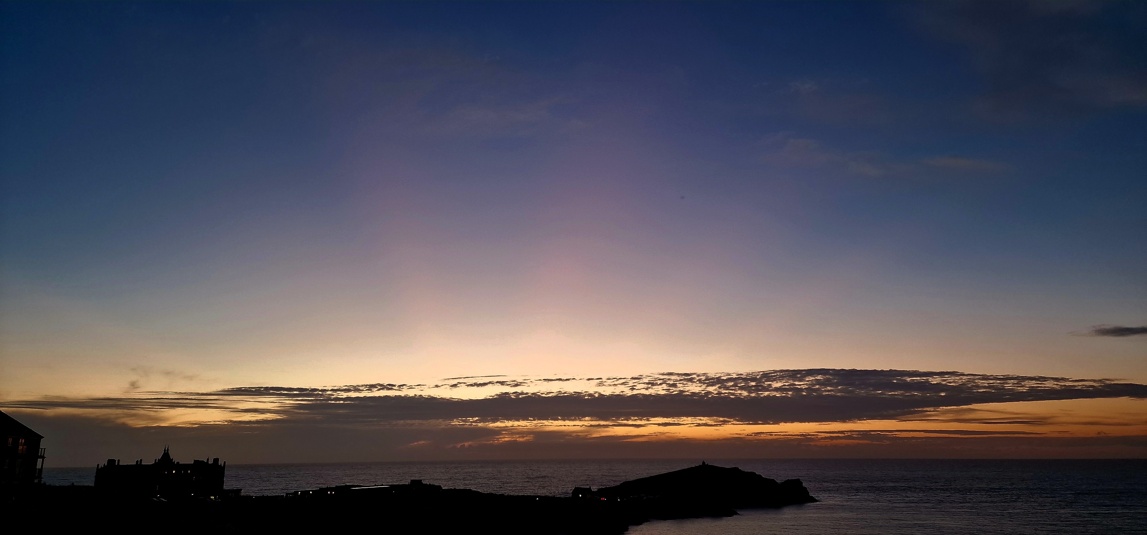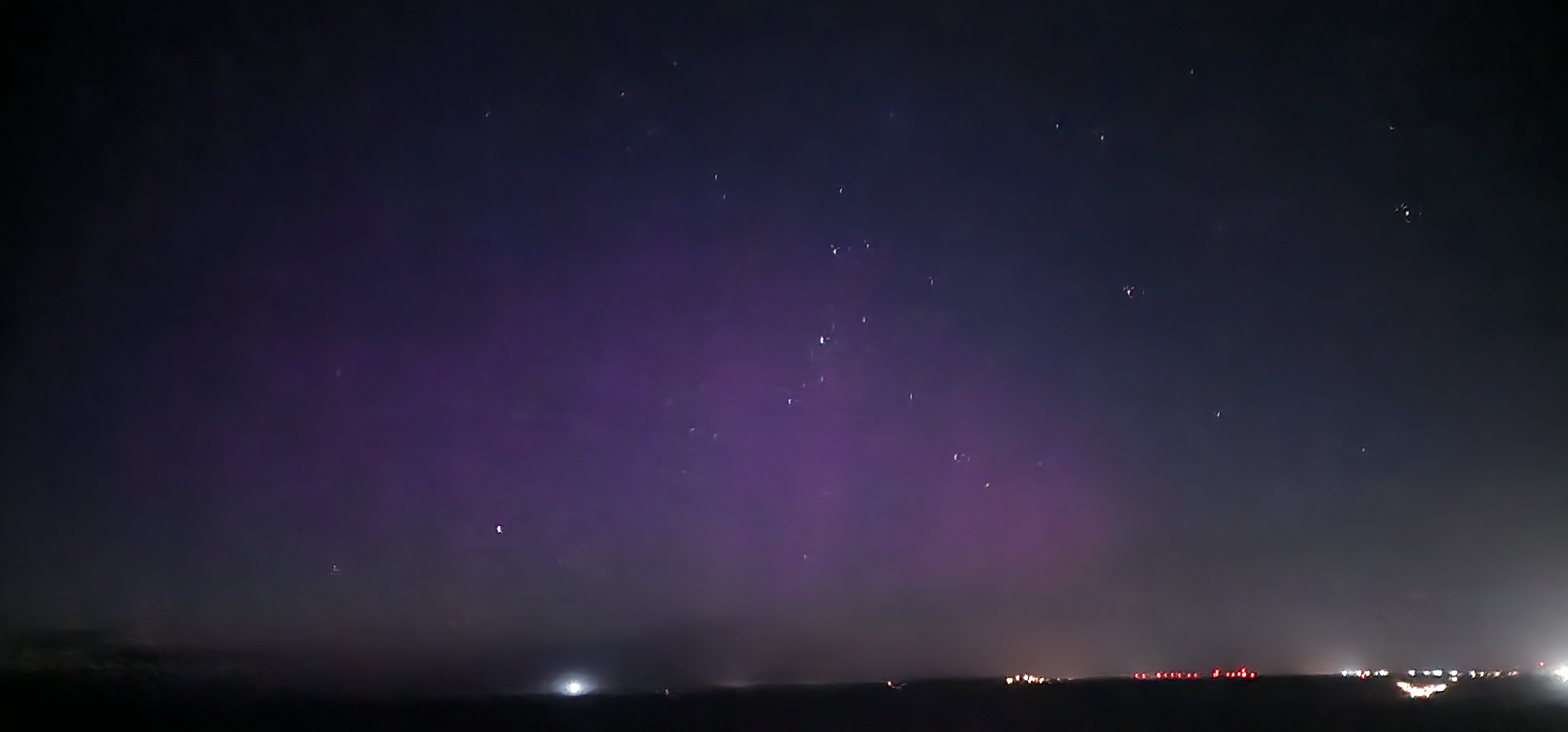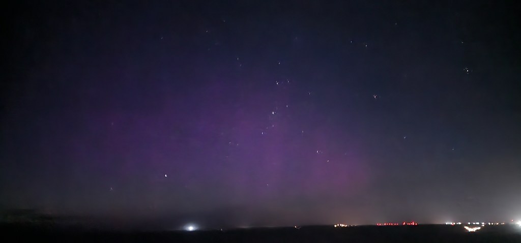 In the picture above is sunset during Aurora time and it looks like sun rays are purple. Even it’s daylight Aurora becomes visible. The darkness came and purple hue enchanted the sky. You could see purple aurora shine even with eyes not just camera.
